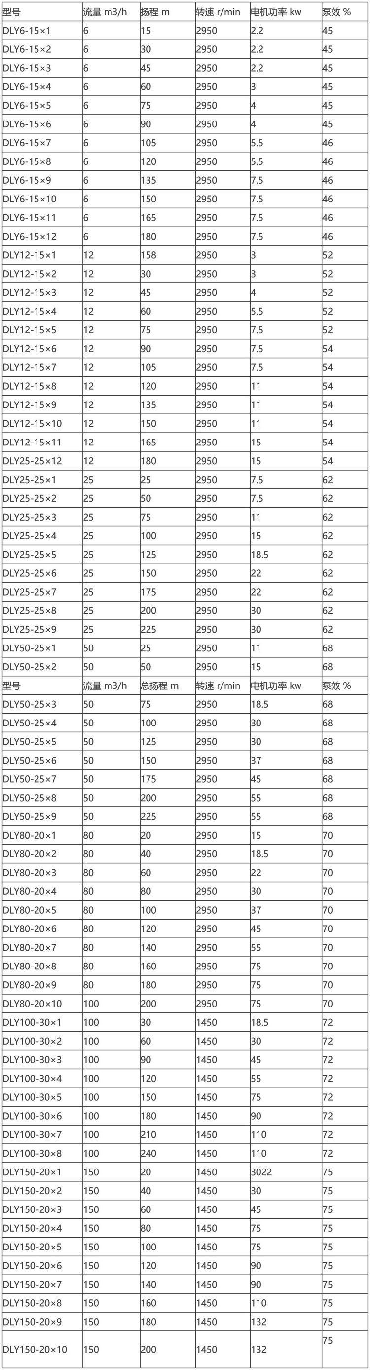 多级液下泵性能参数表